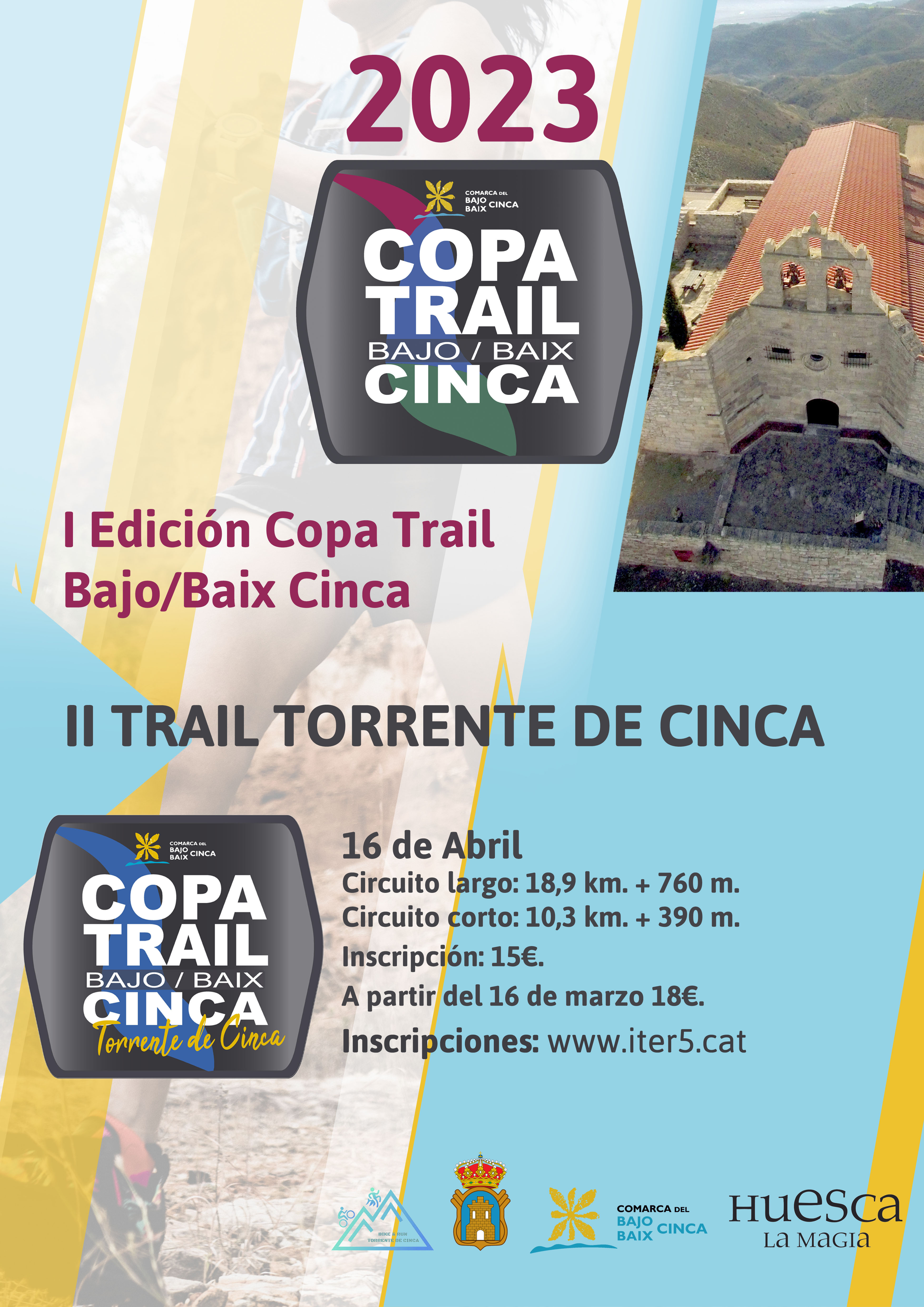 El próximo 16 de abril va a tener lugar la II Trail Torrente de Cinca, organizada por la Comarca del Bajo/Baix Cinca junto al Ayuntamiento de Torrente de Cinca y el Bike Club Torrente de Cinca, una prueba integrada en la I Copa Trail Bajo/Baix Cinca. Esta competición consta de dos recorridos a elegir: uno largo con cerca de 19 kilómetros y otro de poco más de 10 kilómetros