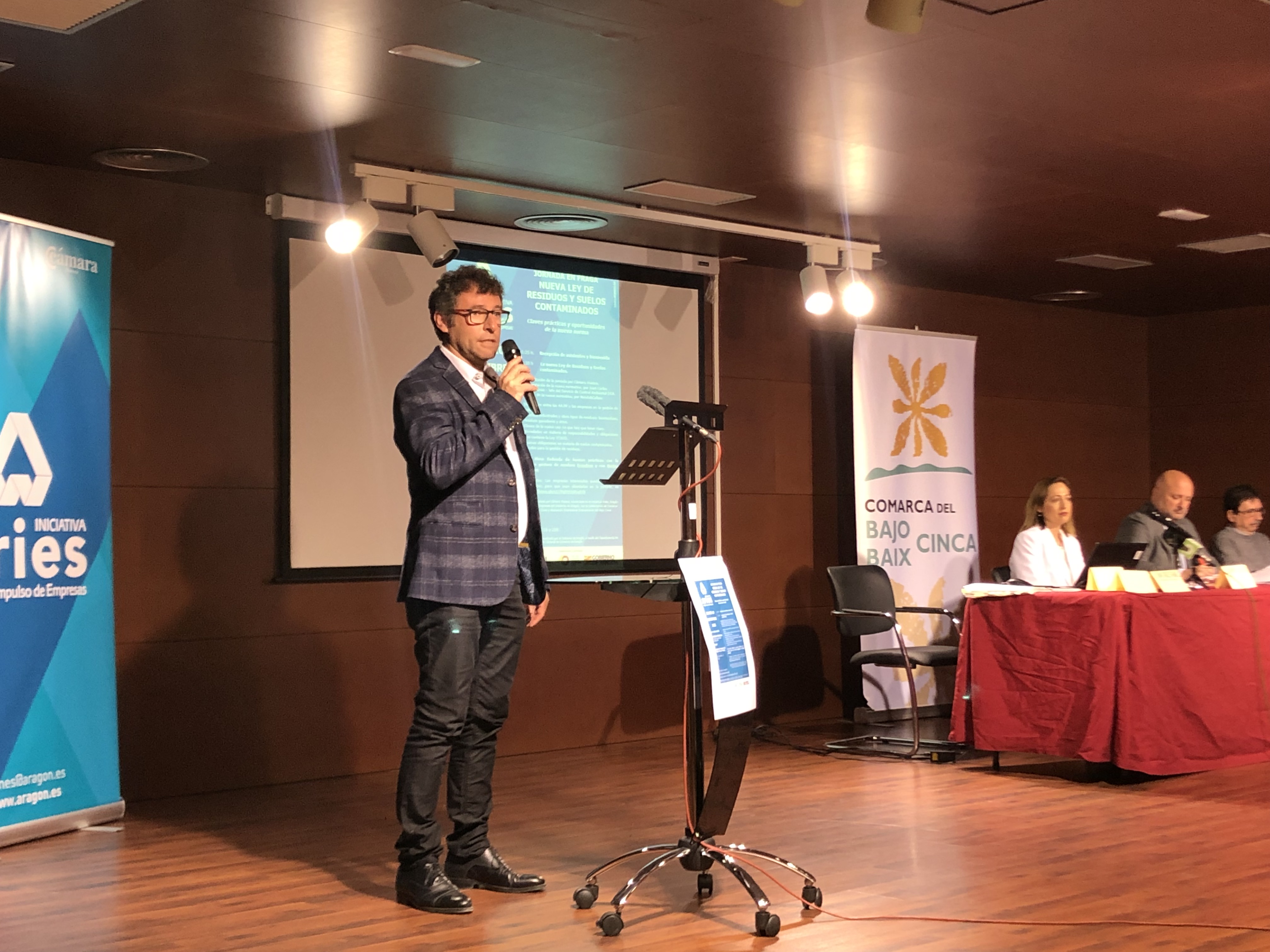 Tras la bienvenida de Marco Ibarz, presidente de la Comarca del Bajo/Baix Cinca que ha hecho hincapié en el gran esfuerzo que se tendrá que realizar entre todos, administraciones, empresas y vecinos, Basilio Méndez ha dado paso a Juan Carlos Rabal, Jefe del Servicio de Control Ambiental del Gobierno de Aragón. Rabal ha explicado que el objetivo de la nueva ley es regular la puesta en el mercado de productos que se convertirán en residuos, la prevención producción y gestión de residuos y los suelos contaminados, cuya finalidad es la de proteger el medio ambiente y la salud humana.