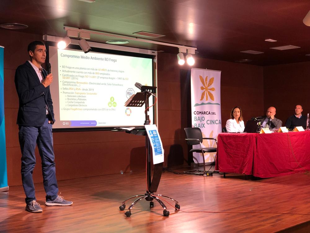Jaume Teixidó, representante de la empresa fragatina Ecoadeso S.L. ha explicado su labor como compañía dedicada a la gestión de residuos. Así mismo, Francesc Lloveras, representante de la multinacional Becton Dickinson asentada en Fraga, ha expuesto las acciones que se toman y su compromiso en la reducción de residuos y emisiones para la protección ambiental.