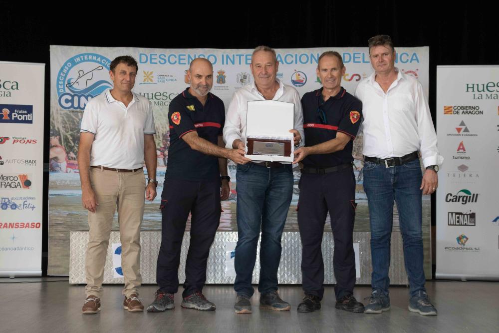 Al inicio de la ceremonia, se hacía entrega del galardón “Valores del Cinca” a los bomberos de la Diputación Provincial de Zaragoza, con mención especial a David Garcés, por su apoyo constante, además del homenaje póstumo a la figura de Hermenegildo “Gilo” Andreu, periodista fallecido recientemente y gran impulsor del Descenso.