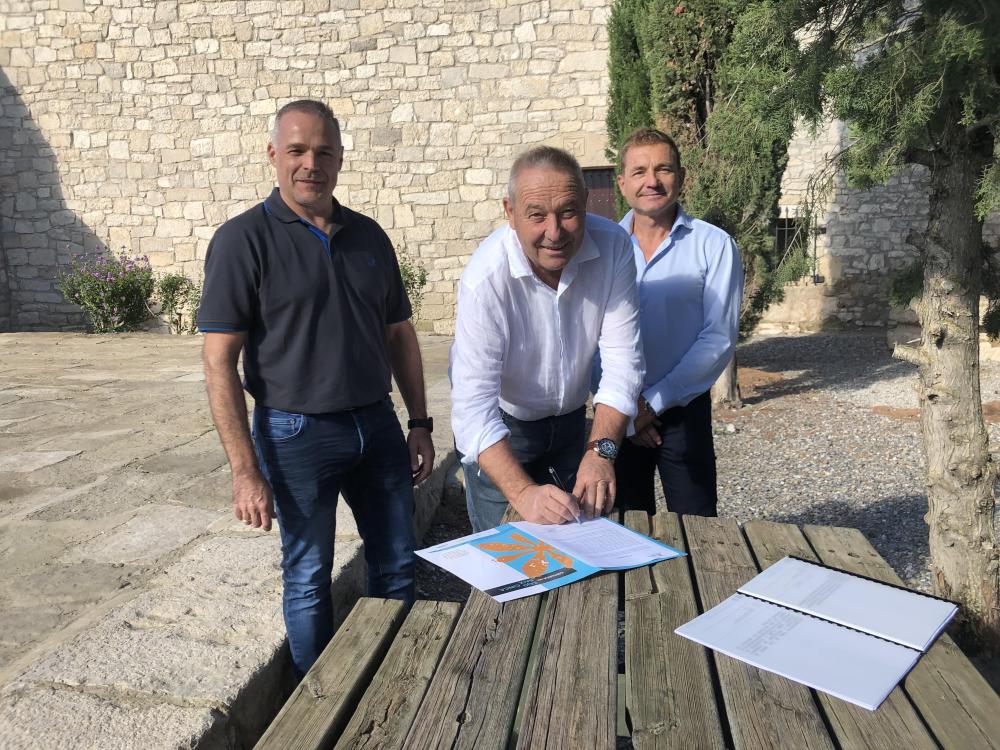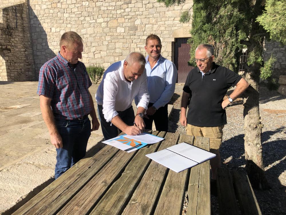 Esta mañana se ha celebrado el acto de recibimiento y entrega de la obra perteneciente al Plan de Sostenibilidad Turística de la Comarca del Bajo/Baix Cinca ejecutada en Torrente de Cinca. Al mismo, han asistido el presidente de la Comarca del Bajo/Baix Cinca, José Javier Ferrer, el consejero de turismo, Javier Carrasquer, el consejero de cultura y patrimonio cultural y alcalde de Torrente de Cinca, Rubén Morell, el arquitecto y director de la obra, Luís Galicia y el representante de la empresa adjudicataria Hormigones Fraga S.L., Benito Pardina.