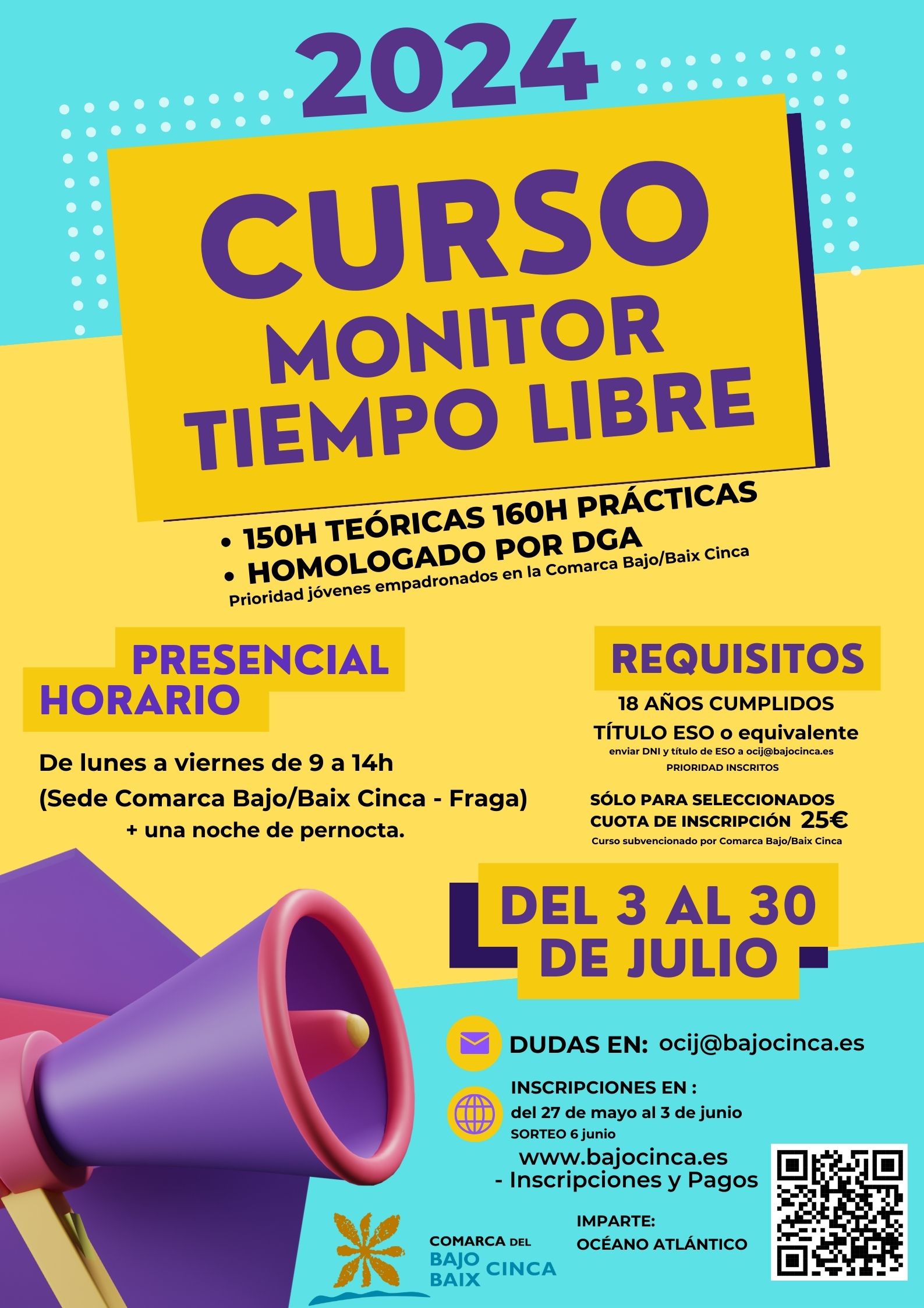 Se debe enviar DNI y el título de la ESO o equivalente al email ocij@bajocinca.es (antes del 3 de junio)