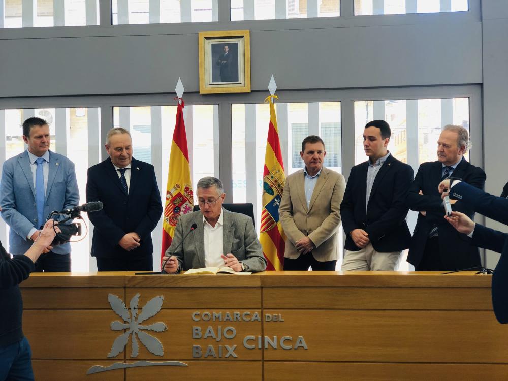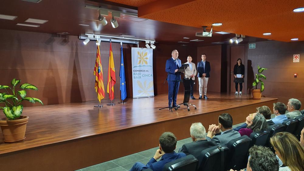 El presidente de la Comarca del Bajo/Baix Cinca, José Javier Ferrer, junto al consejero de turismo, Javier Carrasquer, y al consejero de juventud, Marc Vendrell, y demás autoridades, han acompañado al consejero del Gobierno de Aragón, Manuel Blasco, en una visita por las nuevas instalaciones. Tras la firma en el libro de honor, ha tenido lugar el acto institucional, en el que José Javier Ferrer, presidente comarcal ha dado la bienvenida, en un discurso donde ha puesto en valor el paso que da la institución comarcal para la promoción del territorio, tanto a nivel turístico como para convertirse una herramienta para los más jóvenes. Ferrer ha destacado que las nuevas oficinas son "... un espacio moderno y funcional, una puerta abierta diseñada para ofrecer un servicio práctico y cercano a los ciudadanos".