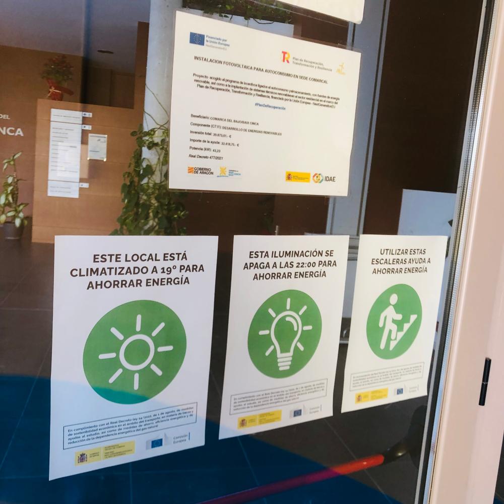 El pasado año 2022 la Comarca del Bajo/Baix Cinca solicitó las ayudas para la instalación fotovoltaica de autoconsumo en la sede comarcal, dentro del proyecto acogido al programa de incentivos ligados al autoconsumo con fuentes de energía renovable en el marco el Plan de Recuperación, Transformación y Resiliencia financiado por la Unión Europea-Next Generation EU.