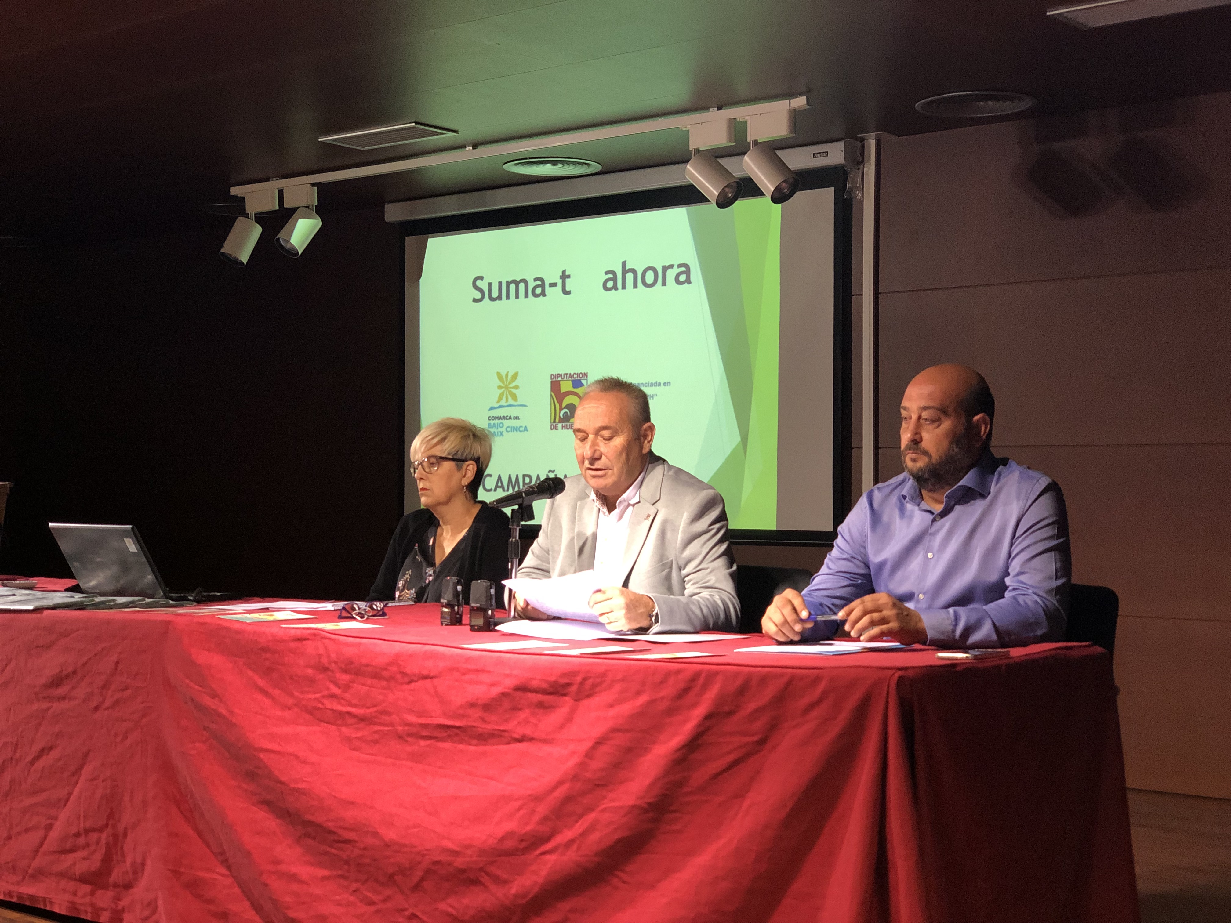 La Comarca del Bajo/Baix Cinca ha presentado esta mañana la campaña de sensibilización ambiental “Súma-t ahora”, centrada en la recogida de los residuos orgánicos. Al acto han asistido el presidente de la Comarca del Bajo/Baix Cinca, José Javier Ferrer, el consejero de residuos y medio ambiente de la Comarca del Bajo/Baix Cinca, Javier Ibarz y la técnico del área de residuos y medio ambiente de la entidad comarcal, Carolina Galicia.