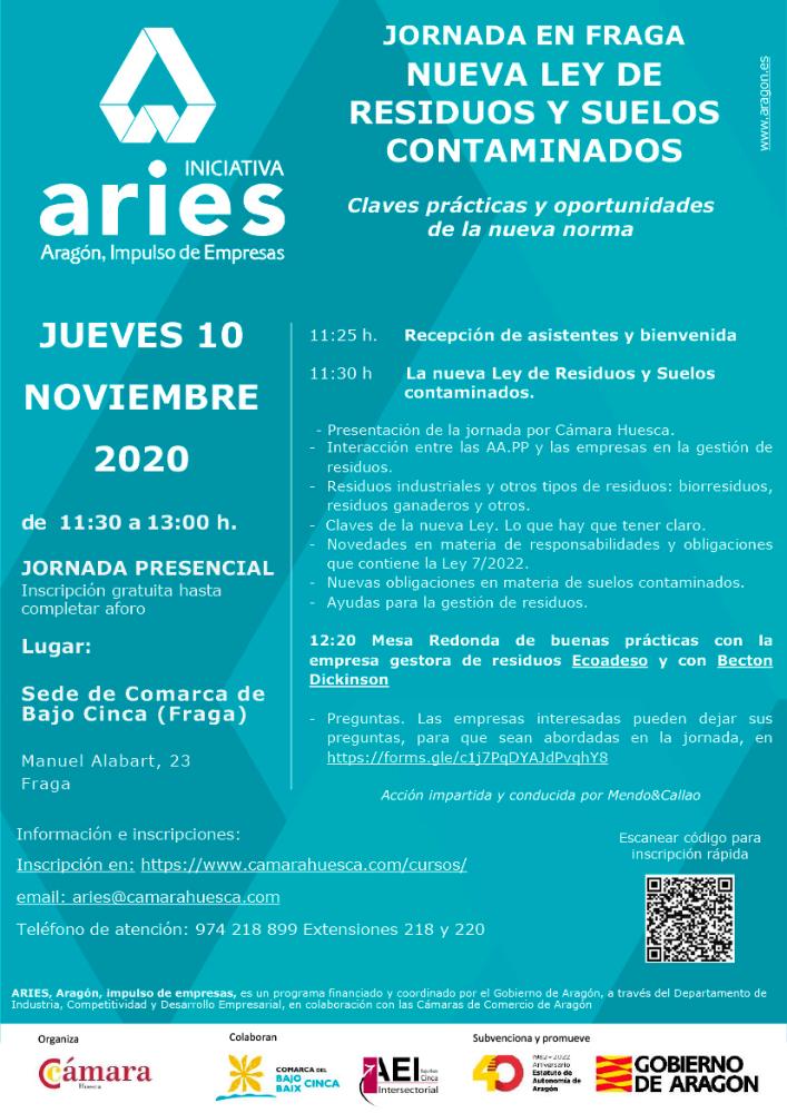 Inscripción: https://www.camarahuesca.com/events/nueva-ley-de-residuos-claves-practicas-y-oportunidades-de-la-nueva-norma-jornada-aries/